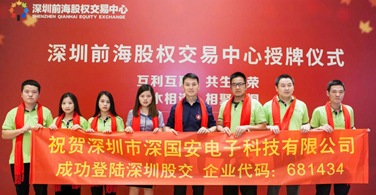 2019年6月19日,深圳市深國安電子科技有限公司作為廣東省氣體檢測儀行業強勢登入股交所,掛牌代碼為:681434,樹立了行業標桿。 人民日報社、鳳凰網、中華網、中國財經時報網、騰訊網、新浪網、搜狐網、未來網財經、中國安防行業網、慧聰網、北國網、中國應急網、太平洋安防網等眾多媒體進行了報道。