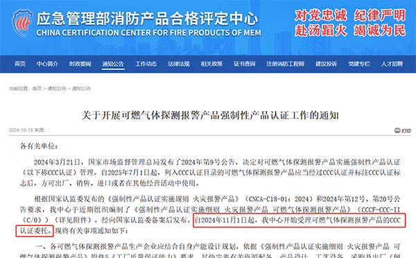 11月新規公告,可燃氣體探測報警器類產品納入3C認證