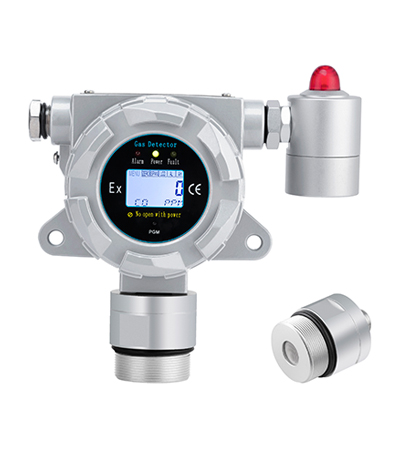 SGA-500系列在線式固定氣體偵測儀功能強大,配置齊全;大屏幕液晶顯示屏,可實時顯示檢測的氣體名稱、氣體單位、現場濃度值等信息;工作指示燈(綠)、報警指示燈(紅)、故障指示燈(黃)、監測狀態,一目了然;國外原裝進口氣體傳感器,反應靈敏,測量精準;32位納米級微處理器+24位超高ADC采集芯片,反應速度更快,檢測數值更穩定;全量程溫濕度補償及智能運算,確保監測數據準確無誤;一體式聲光報警器,簡潔大方;當現場監測氣體濃度值達到預設報警點時,會自動發出85dB以上聲光報警、提醒人員安全撤離;還可選配開關量信號,與風機、切斷閥、噴淋系統等設備進行聯動,自動處置險情;紅外遙控器,無需開蓋即可對現場氣體報警器進行調零、高低報設置、氣體校準等服務;深國安獨有三防設計(防高濃度過載+防人員誤操作+防雷擊),安全系數可與國外原裝進口氨氣氣體檢測儀相媲美: