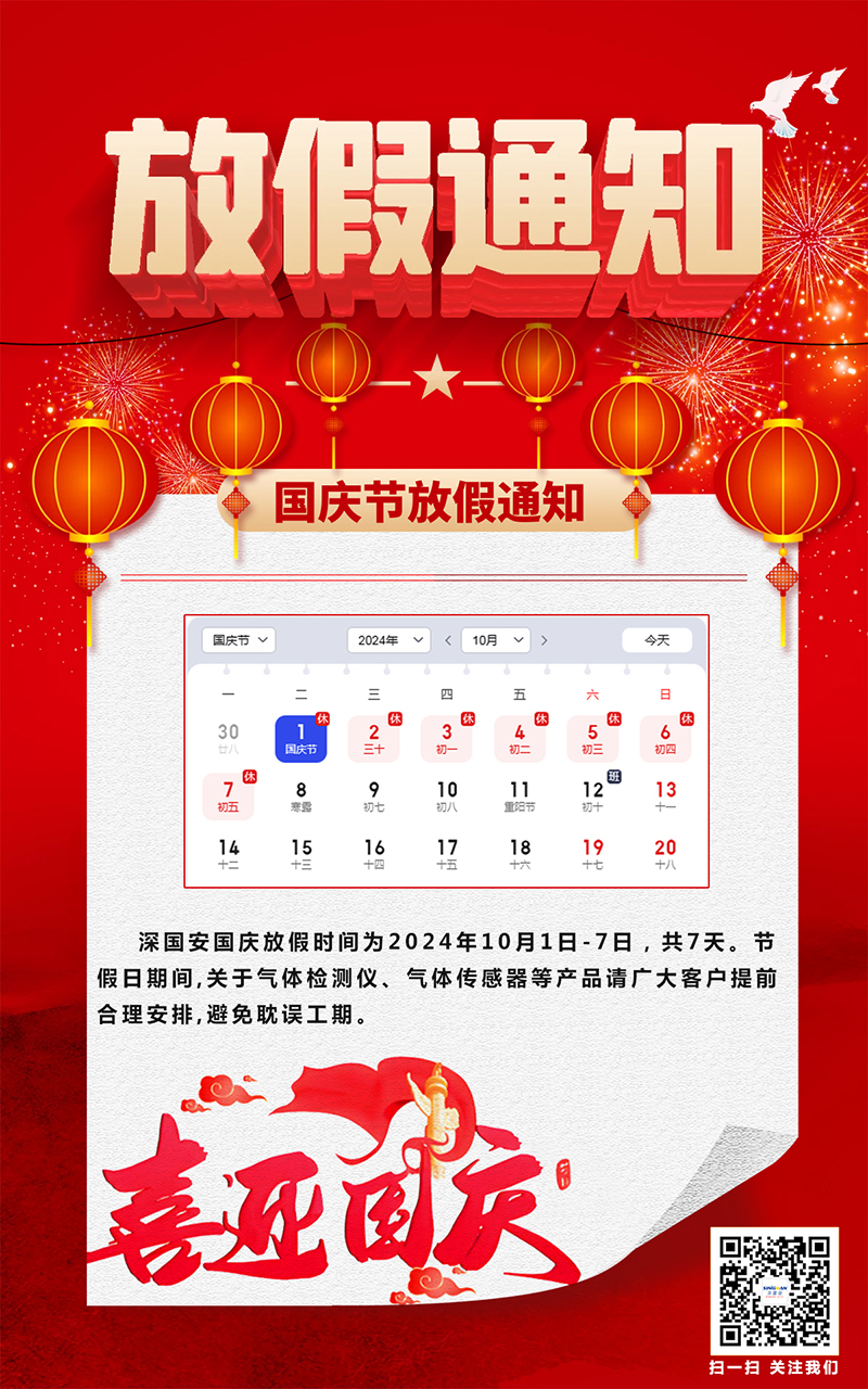 根據(jù)國家節(jié)假日放假規(guī)定及公司的實際情況,深國安國慶放假安排如下:放假時間:2024年10月1日至10月7日,共計7天,10月8日星期二,正式上班。(放假期間正常接單,節(jié)后統(tǒng)一安...