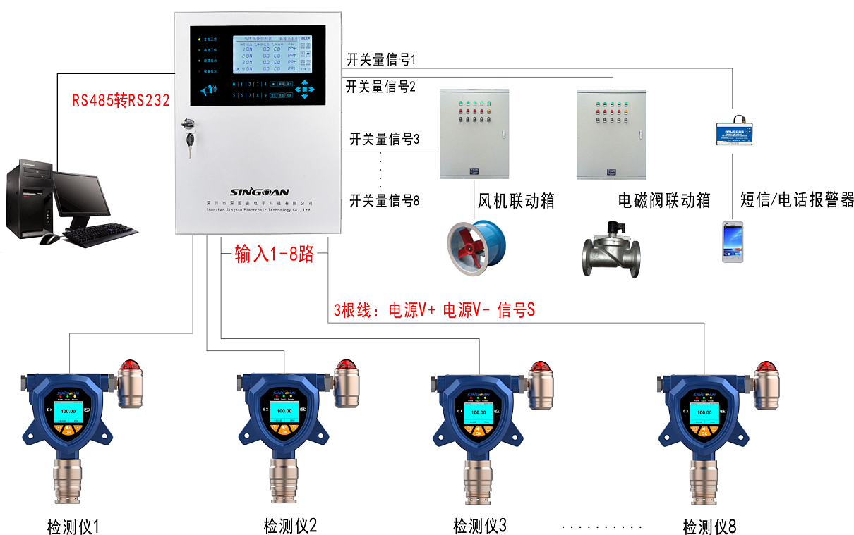 6)自帶8組繼電器開關(guān)量信號(hào),可同時(shí)與多組電磁閥、風(fēng)機(jī)等進(jìn)行聯(lián)動(dòng);