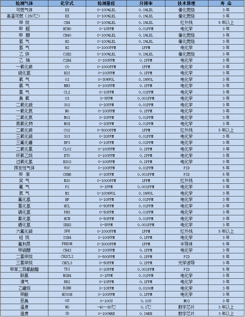 ※另有1000種氣體和量程可選,詳細(xì)請(qǐng)咨詢深國(guó)安銷售人員!