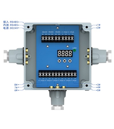 SGA-500-ZHQ信號轉換器是深國安專門為配套SGA-502/504/506系列固定式多合一氣體檢測儀所研發生產的一款產品;SGA-502/504/506系列固定式多合一氣體檢測儀受體積限制只能輸出RS485-RTU信號。選配SGA-500-ZHQ信號轉換器后,可由RS485轉換成4-20mA信號,最多支持8組4-20mA信號輸出;產品標配3個電氣接口,4個固定孔,方便現場安裝布線。