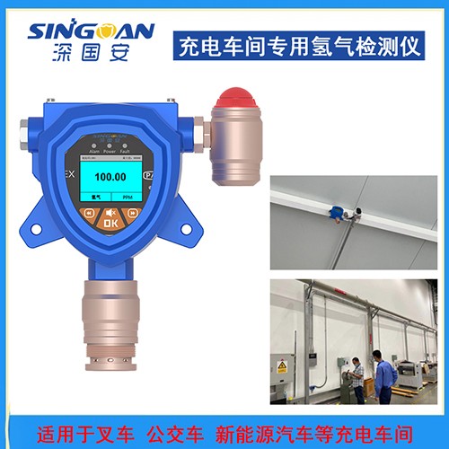 目前國家大力發展新能源建設,例如各地建設充電樁,主要用途供能源汽車、叉車、電動公交車等都是需要進行充電,但是充電樁也會存在氣體安全的隱患,因為常見在充電車間中產生的氣體為氫氣,氫氣既是一種易燃易爆性的氣體,又是一種有毒有害性的氣體。因此,在充電車間中產生的氫氣,需要裝置氫氣檢測儀,對其進行檢測的。氫氣的泄漏會使得充電車間的危險系數增加,氫氣本身是可燃性氣體,而車間中的電池等又是會造成燃燒的材料,氫氣報警器的安裝能有效降低充電車間的危險系數,同時,多個車間則需要多裝氫氣檢測儀。