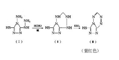 氨基-3-肼基-5-巰基-1,2,4-三氮唑(AHMT)法的原理為 4-氨基-3-肼基-5-巰基-1,2,4-三氮唑 (AHMT) 在堿性條件下與甲醛進行縮合反應;高碘酸鉀可將反應產物氧化成紫紅色化合物,其顏色的深淺與甲醛含量成正比,通過體系的吸光度可計算定量甲醛的濃度。
